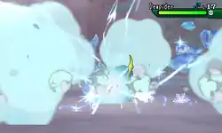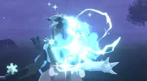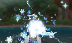 Black Kyurem fires a bright ray of electricity from its body at the opponent, freezing them solid. | ||