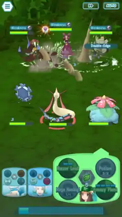 Venusaur's body becomes outlined light green and it stomps on the ground. Giant roots with spikes on them come out of the ground and strike the opponent. | ||