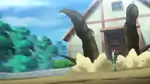 Sceptile turns around and releases one beam of energy from each seed on its back at the opponent. | ||