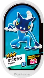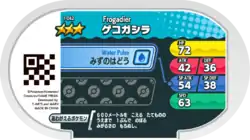Frogadier (Japanese: ゲコガシラ Gekogahshier) is a Grade 3 Pokémon Mezastar tag. It is part of the first set.