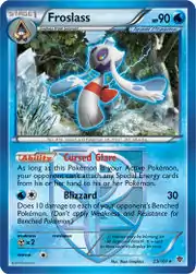 The Cursed Glare Ability was first seen as a Poké-BODY on Cacturne ex from EX Emerald. Blizzard is a move in the Pokémon games that Froslass can learn. This card's Pokédex entry comes from Pokémon Black 2 and White 2.