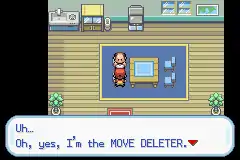 In Generation III, a Move Deleter resides in a house in Fuchsia City that cannot be accessed in Generations I, II, or IV, next to the city's Pokémon Center. The Move Deleter is a very forgetful man who lives alone. For no charge, he will make a Pokémon forget a move that it knows, provided that the move is not the only move which that Pokémon knows. He is the only way for a Pokémon to forget HM moves such as Cut or Fly.