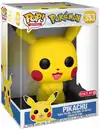 Super-sized variants are larger, 10 or 18 inch versions of standard figures. The 10 inch are sold exclusively at Target. Super-sized variants are uniquely numbered; the 10 inch Pikachu is the only super-sized variant that shares a number with its standard figure. The 18 inch Pikachu was the first 18 inch figure in the Pop! Games line.