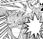 Rhydon repeatedly thrusts the horn on its nose at the opponent. | ||