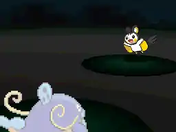 Uxie raises its hands into the air and a light blue ball of energy with light blue sparks of electricity surrounding it appears above them. Light blue lightning bolts then fire from the ball into the sky and disappear. After a while, light blue lightning bolts appear and shoot out of the sky, hitting the opponent. | ||