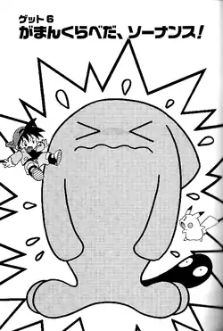(Japanese: がまんくらべだ、ソーナンス! A Battle of Wills, Sonans!) is the 67th chapter of the Pokémon Gotta Catch 'Em All manga.