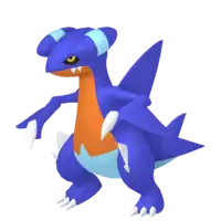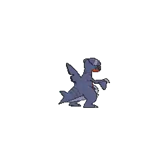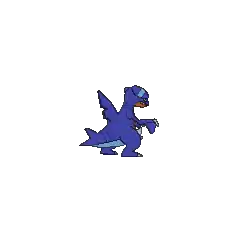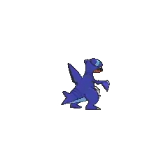 Gabite is a fierce and predatory Pokémon, known for its scales, which have medicinal properties and can heal most illnesses. Gabite has short, extremely sharp teeth, like its pre-evolved form Gible. It has been known to move at extreme speeds. The protrusion on Gabite's head allows it to emit ultrasound waves, which can be used for navigating through pitch-dark caves. Gabite is also a very territorial creature and will fight back against enemies to protect its home. Gabite is passionate about shiny objects, such as gems and even Carbink, and it hoards a collection of them in its nest. When it sees Sableye trying to take Carbink as food, Gabite jealously attacks the Sableye.