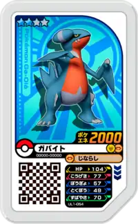 Gabite (Japanese: ガバイト Gabite) is a Grade 2 Pokémon Ga-Olé disk. It is part of the first Ultra Legend set.
