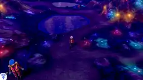 Galar Mine No. 2 is a purple cavern with several pools of water inside. It is lit by crystals of many colors.