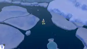 - Moving in a circle around a group of icebergs northwest of the Pokémon Camp