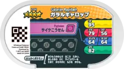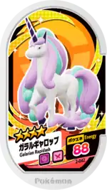 Galarian Rapidash (Japanese: ガラルギャロップ Galarian Gallop) is a Grade 4 Pokémon Mezastar tag. It is part of the second set.