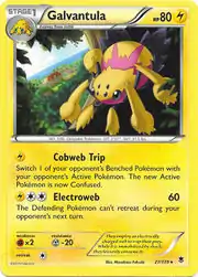 Galvantula (Japanese: デンチュラ Dentula) is a Lightning-type Stage 1 Pokémon card. It is part of the Phantom Forces expansion.