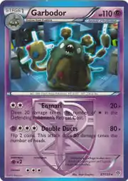 Garbodor (Japanese: ダストダス Dustdas) is a Psychic-type Stage 1 Pokémon card. It is part of the Plasma Storm expansion.