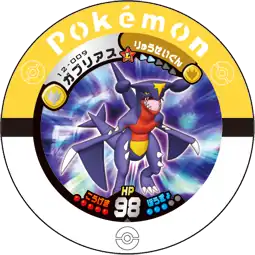 Garchomp (Japanese: ガブリアス Gaburias) is a Pokémon Battrio puck. It is part of the Sky-Tearing Rayquaza expansion.
