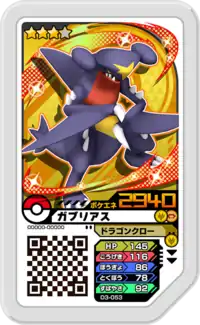 Garchomp (Japanese: ガブリアス Gaburias) is a Grade 3 Pokémon Ga-Olé disk. It is part of the third Dash set.