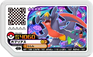 Garchomp (Japanese: ガブリアス Gaburias) is a Grade 4 Pokémon Ga-Olé disk. It is part of the fourth Grand Rush set.