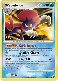 - Weavile - After the rotation of Double Rainbow Energy and Scramble Energy, Gardevoir/Gallade suffered from a lack of energy acceleration and faded from the public eye. However, players began to combo the deck's main attackers with Weavile, Special Darkness Energies, and a newer line of Trainers, Supporters, and Stadiums. Weavile's Shadow Charge attack allowed for faster energy attachment to Gardevoir and Gallade, and its Dark Engage Poké-Power allowed attackers to do more damage when they had Special Darkness Energies attached. Weavile was not so much a tech card as the revival of Gardevoir/Gallade.
