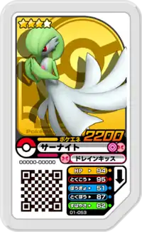Gardevoir (Japanese: サーナイト Sirnight) is a Grade 3 Pokémon Ga-Olé disk. It is part of the first set.