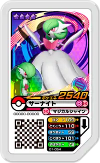 Gardevoir (Japanese: サーナイト Sirnight) is a Grade 4 Pokémon Ga-Olé disk. It is part of the first set.