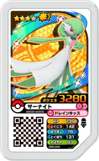Gardevoir (Japanese: サーナイト Sirnight) is a Grade 3 Pokémon Ga-Olé disk. It is part of the fifth Grand Rush set.