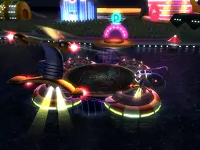 Gateway Colosseum floats at the Pokétopia Gateway and is lit by bright neon lights. All battles here are depicted as being held at night.