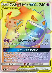 This card was included as a Regular card, a Full Art card, a Special Full Art card, and as a Secret Rainbow Rare in the Team Up expansion, first released in the Japanese Tag Bolt expansion. The Regular print features artwork by Mitsuhiro Arita, the Full Art and Rainbow Rare prints feature artwork by 5ban Graphics, while the Special Full Art print features artwork by Midori Harada.