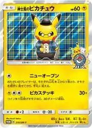 Gentlemanly Pikachu (Japanese: 紳士風のピカチュウ Gentlemanly Pikachu) is a Lightning-type Basic Pokémon card. It is one of the SM-P Promotional cards.
