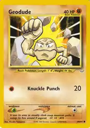 Geodude (Japanese: イシツブテ Isitsubute) is a Fighting-type Basic Pokémon card. It is part of the Neo Revelation expansion.