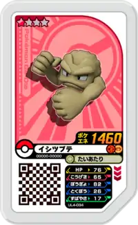 Geodude (Japanese: イシツブテ Isitsubute) is a Grade 1 Pokémon Ga-Olé disk. It is part of the fourth Ultra Legend set.