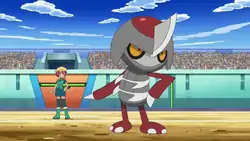 | Bisharp was used by Georgia during her quarter-final battle against Ash during the Club Battle tournament, as a Pawniard. Pawniard proved to be an extremely powerful Pokémon against her opponent, Ash's Snivy. Not only was she able to move so quick that she cut up Snivy's Leaf Storm but was also immune to Snivy's Attract due to the fact both were female. Soon Snivy started to gain the upper hand, but Pawniard turned things around quickly and put Snivy on the defensive before attempting to finish her in one-hit with Guillotine. However, Snivy was able to fight back, and managed to get both of Pawniard's needle-like arms caught in the ground. Now with no defense, Snivy was able to make a direct hit with Leaf Storm, knocking Pawniard out, leading to Georgia's elimination from the tournament.