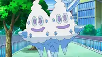 | Vanilluxe made its debut in Crisis at Ferroseed Research! where it initially scared Iris by approaching her from behind before it was revealed to be Georgia's Pokémon. Vanilluxe was a very playful Pokémon and wanted to have fun with Axew; however, as the Dragon-type was also scared of Ice types, he ran away, and Vanilluxe playfully gave chase, with Ash's Oshawott following due to having a crush on it. Due to this, Iris was caught inside the Ferroseed Research Institute when it was covered with electrically-charged moss. Iris overcame her fear of Vanilluxe and commanded it during her mission to free the people trapped inside.