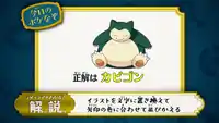 Arranging the characters of びん bin (bottle) and かご kago (basket) to match the colors of the arrow gives カビゴン Kabigon (Snorlax). |