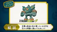 The characters colored differently from the meaning of the word from right-to-left give ゴルーグ Goloog (Golurk). |