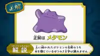 The characters within the names of the Pokémon depicted above without the two characters on the same side as his closed eye give メタモン Metamon (Ditto). |