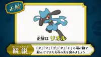 The characters ahead of the arrow formed by connecting with lines the Eggs in the order of タ ta, マ ma, ゴ go, タ ta, and チ chi, which spell タマゴタチ Tamago-tachi (Eggs), give リオル Riolu. |