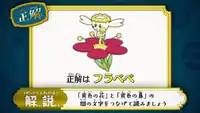 The petals of each flower correspond to the characters in the word for the color of the flower. Arranging the petals as shown gives フラエッテ Floette. |