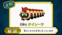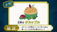 Each apple in the trees correspond to a character in the name of the Pokémon below. The characters corresponding to the red apples give タルップル Tarupple (Appletun). |