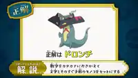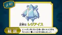 The remaining characters after melting the characters in ice give セイカイハリザードン Seikai wa Lizardon (The answer is Charizard). |