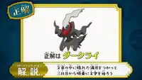 Using the period in the text as the full moon, the characters along the lines connecting the crescent, quarter, gibbous, and full moons in order spell コタエハダークライ Kotae wa Darkrai (The answer is Darkrai). |
