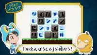 The characters ahead of the arrow initially read ジメンニオトシテ jimen ni otoshite (drop on the ground); when the floating characters are dropped on the ground, the characters now ahead of the arrow give マルマイン Marumine (Electrode). |