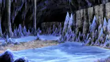 In Black and White, when the player reaches the pond in the middle of the crater, the forest will freeze and be completely covered in snow, thus giving the player access to the cave Kyurem is hiding. Once the player has captured or defeated Kyurem and left the area, the snow will disappear, and the northern portion of the caves will no longer be accessible. If Kyurem is defeated, however, the area will become accessible again after defeating the Pokémon League once more and returning to the pond in the center of the crater.