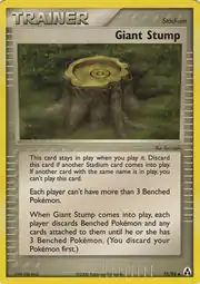 Giant Stump (Japanese: 巨大な切りかぶ Giant Cut Stump) is a Stadium card. It is part of the EX Legend Maker expansion.