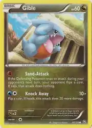 Sand-Attack is a move in the Pokémon games that Gible can learn. This card's Pokédex entry comes from Pokémon Black and White. The Pokémon League of Unova is featured in the illustration.