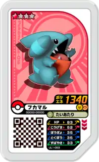 Gible (Japanese: フカマル Fukamaru) is a Grade 1 Pokémon Ga-Olé disk. It is part of the first Ultra Legend set.