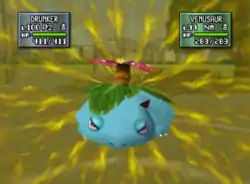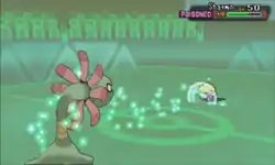 Vileplume releases a beam of energy from the hole on the flower on its head at the opponent. When the beam of energy hits the opponent, it drains its energy. | ||