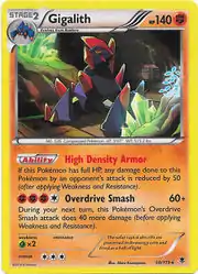 Gigalith (Japanese: ギガイアス Gigaiath) is a Fighting-type Stage 2 Pokémon card. It is part of the Phantom Forces expansion.