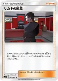 Giovanni's Exile (Japanese: サカキの追放 Sakaki's Banishment) is a Supporter card. It was first released as part of the Unbroken Bonds expansion.