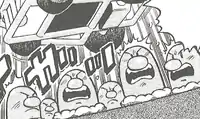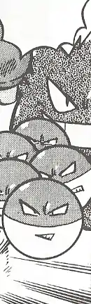 Giovanni used multiple Electrode in Stop the Strange Sonic Sound!! in Team Rocket's hideout where their energy and electricity was used to power up the machine that made the Pokémon nearby go out of control. None of Electrode's moves are known. | ||