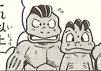 Giovanni first appeared in Pikachu Was Kidnapped!! and his twin brother debuted in Finish Off Team Rocket!!. In Giovanni's first appearance, he is running the Rocket Game Corner where Red, Clefairy and Pikachu go to. Green and his Charmander go there as well. A Hitmonlee comes by and takes Pikachu. The Hitmonlee is revealed to belong to Giovanni and Team Rocket. Giovanni had Hitmonlee kidnap Pikachu in order to lure Red into his trap. Two chapters later, Giovanni, along with his twin brother, are at Silph Co. and holds Erika's father hostage. He even takes the Porygon that belonged her father and uses them against Red and the others. Giovanni takes advantage of them by cloning them with a machine controlled by a device his twin brother was holding. Pikachu destroys the device with an electric attack which renders the clones useless.