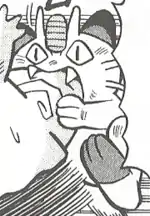 Meowth reappeared in Clefairy's Christmas Present?! when the town was celebrating Christmas. It got into a snowball fight by Clefairy. Meowth ran away after getting hit by Golem in disguise as a snowball. Later, Meowth tried to make everything right by making a cake for the poor, which resulted in exploding when Clefairy tried cutting it. Meowth was then seen with Giovanni and his twin brother in Get The Last Badge!!. In Team Rocket's Downfall!!, Meowth worked as a samurai where it attacked some people including Red for self-defense. After noticing a Jynx trapped, the dojo turned out to be a Team Rocket scam. None of Meowth's moves are known. | ||